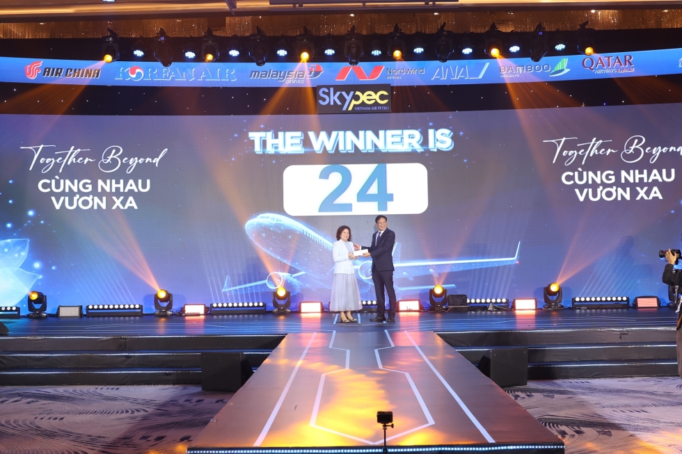 Mr. Nguyễn Văn Luận, Deputy General Director of Skypec, presented the Third Prize to a lucky guest