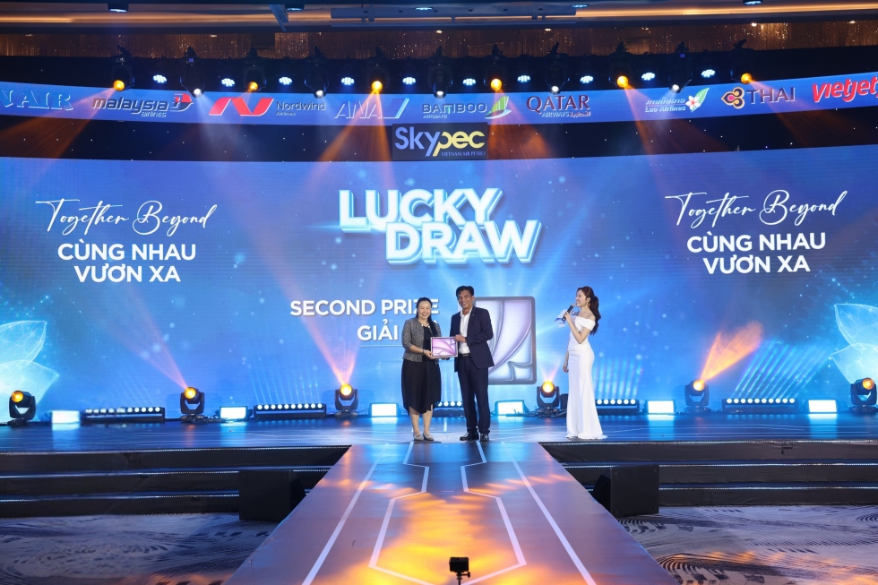 Mr. Hoàng Hải Hồ, Member of the Members’ Council of Skypec, presented the Second Prize to a lucky customer,