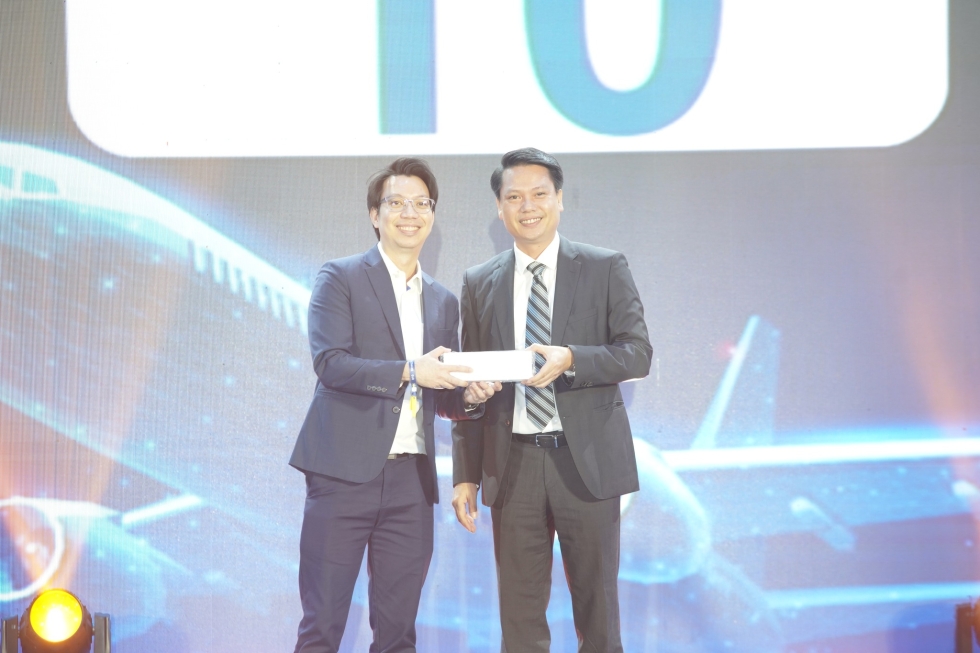 Mr. Trần Minh Tuấn, General Director of Skypec, presented the Second Prize to a lucky customer, offering congratulations and