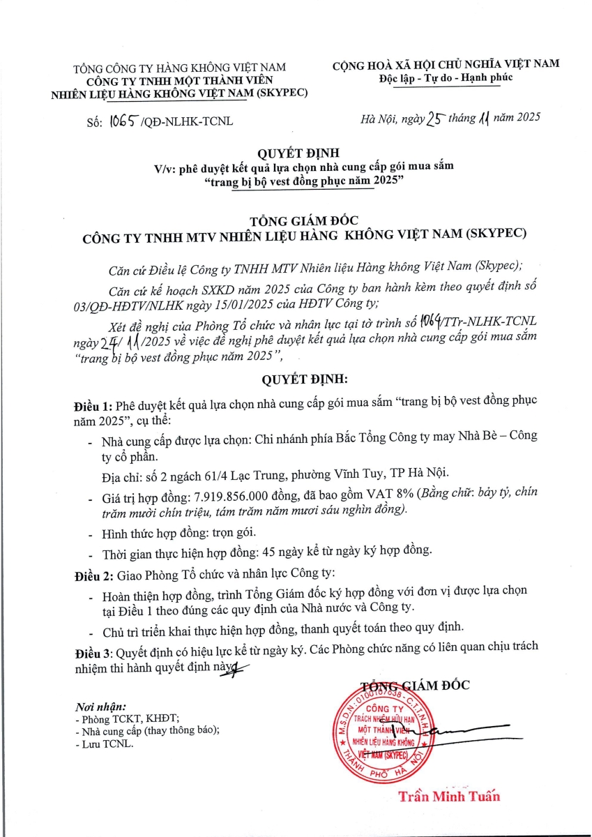 PHÊ DUYỆT KẾT QUẢ LỰA CHỌN NHÀ THẦU GÓI MUA SẮM DỊCH VỤ TỔ CHỨC SỰ KIỆN: CHƯƠNG TRÌNH TRI ÂN ĐỐI TÁC NĂM 2025