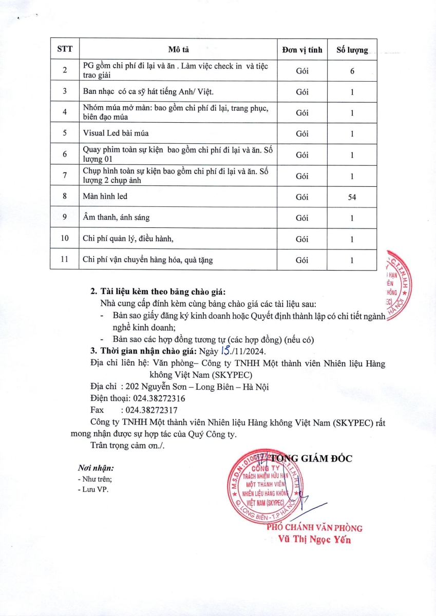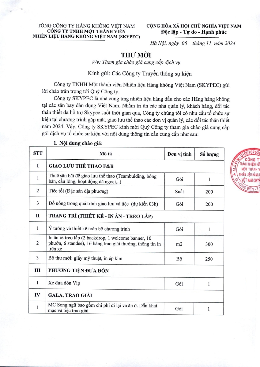 THƯ MỜI CHÀO GIÁ CUNG CẤP DỊCH VỤ: TỔ CHỨC SỰ KIỆN