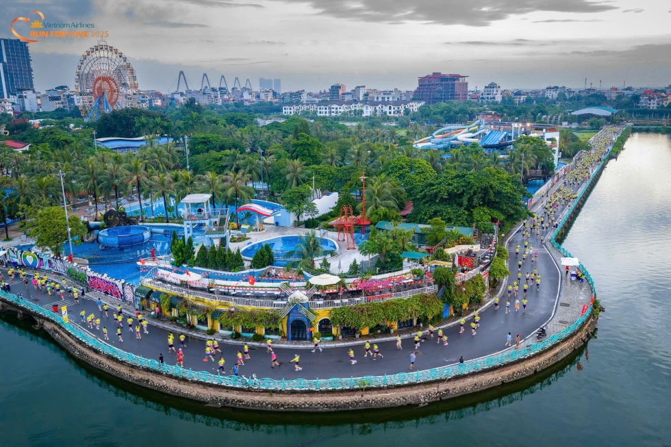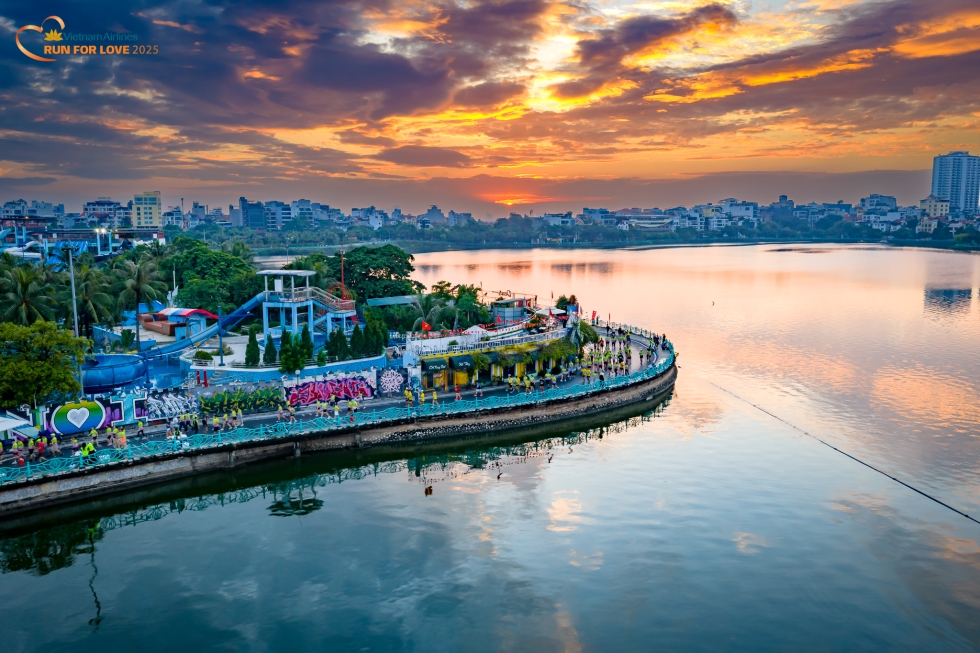 Toàn cảnh đường chạy Run For Love 2025 - khung cảnh hồ Tây Hà Nội