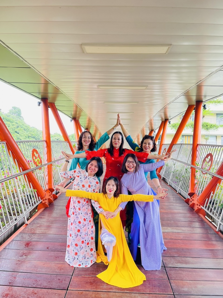 Phụ nữ Skypec trong trang phục áo dài truyền thống tại khu vực Cầu Mây
