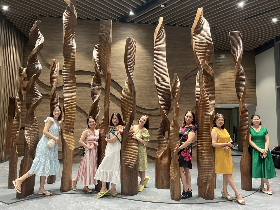 Hòa mình vào không gian xanh mát của Huyện đảo Cát Bà, tại đây hơn 40 chị em trong đoàn đã được cùng nhau trải nghiệm những khoảnh khắc tuyệt vời thông qua các hoạt động tập thể: Teambuilding ngoài trời, chụp ảnh check in tại Cầu Mây, thưởng thức đồ uống tại Sky Bar trên đỉnh núi, tắm khoáng nóng Onsen phong cách Nhật Bản; trải nghiệm bể bơi ốc đảo nước mặn, bể bơi vô cực…Đây được xem là cơ hội quí báu để chị em tái tạo sức lao động sau những ngày làm việc căng thẳng cũng như tăng cường sự chia sẻ, thấu hiểu lẫn nhau giữa các nữ cán bộ- nhân viên trong Chi nhánh.