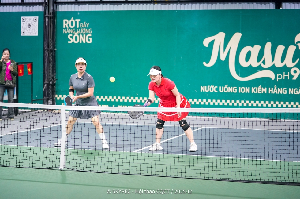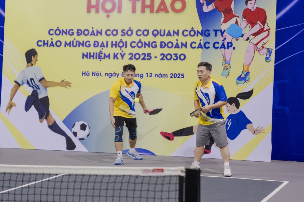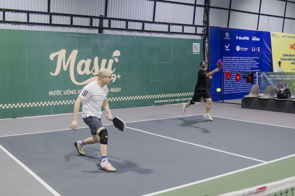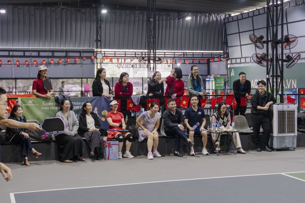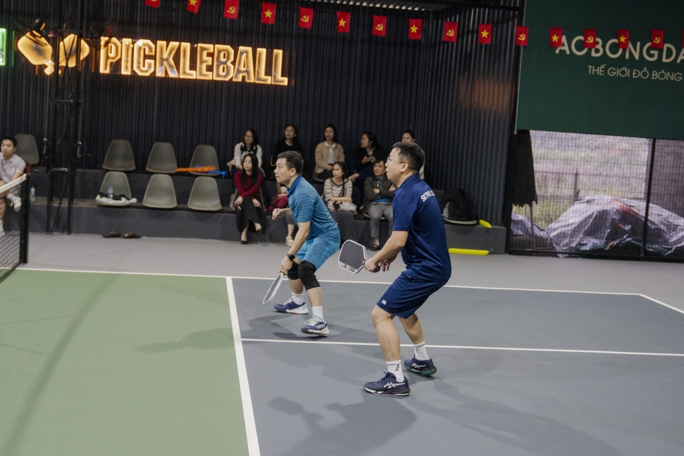 Môn Pickleball dù còn mới với nhiều CBNV cũng tạo lên cơn sốt với những trận đấu đôi nhanh, kỹ thuật và không kém phần hài hước nhờ tiếng bóng “bộp bộp” đặc trưng và những pha đánh lừa đối phương đầy bất ngờ.