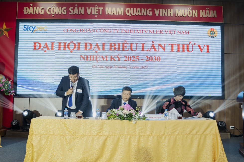 Đại hội Công đoàn Công ty SKYPEC lần thứ VI, nhiệm kỳ 2025 - 2030 thành công tốt đẹp, Đại hội kêu gọi toàn thể đoàn viên, NLĐ trong toàn Công ty đoàn kết vượt qua khó khăn, hăng hái thi đua, nỗ lực hoàn thành tốt nhiệm vụ, đảm bảo SXKD an toàn tuyệt đối, thực hiện thắng lợi Nghị quyết Đại hội Đại biểu Công đoàn Công ty lần thứ VI, nhiệm kỳ 2025-2030, góp phần thực hiện thắng lợi Nghị quyết Đại hội đại biểu Đảng bộ Công ty nhiệm kỳ 2025-2030, xây dựng Công ty ngày càng phát triển vững mạnh, toàn diện.