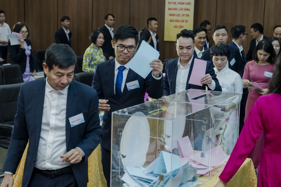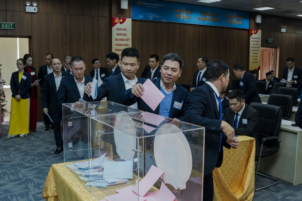 Các đại biểu tham gia bỏ phiếu thực hiện bầu Ban chấp hành khóa mới và đại biểu dự Đại hội đại biểu Công đoàn TCT HKVN nhiệm kỳ 2025 – 2030.