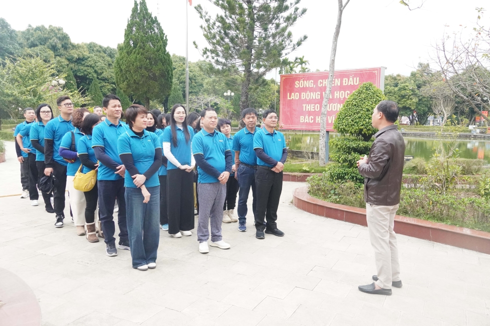 Các CBNV Văn phòng tham quan, nghe giới thiệu về lịch sử và giá trị truyền thống tại khu di tích.