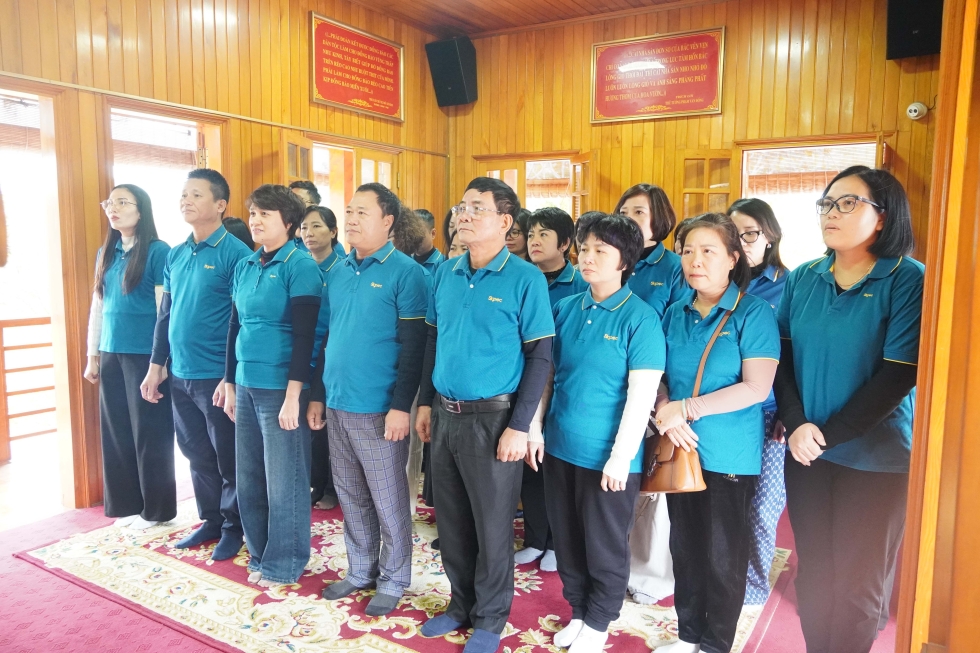 Đồng chí Vũ Thị Ngọc Yến - Ủy viên BCH Đảng bộ Công ty, Bí thư chi bộ, Chánh Văn phòng cùng cán bộ, đảng viên, CBNV của Văn phòng thắp hương tưởng niệm Bác Hồ tại Khu di tích