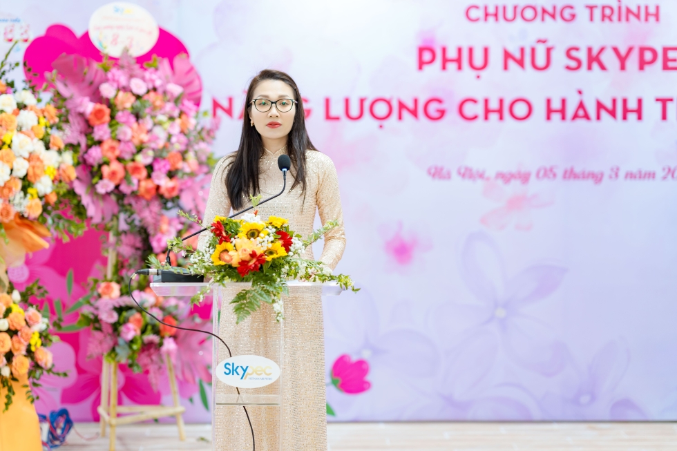 Đ/c Vũ Thị Hồng Nhung - ĐUV, Phó Chủ nhiệm UBKT ĐU Công ty; UVBCH Công đoàn Công ty, Chủ tịch CĐCS Cơ quan Công ty, Trưởng Ban nữ công Công ty đã gửi những lời chúc mừng chân thành nhất đến toàn thể chị em phụ nữ SKYPEC. Trong bài phát biểu, đồng chí đã nhấn mạnh: “Phụ nữ SKYPEC không chỉ là những người mẹ, người vợ, người con tận tụy trong gia đình, mà còn là những chiến sĩ trên mặt trận sản xuất kinh doanh, là nguồn năng lượng dồi dào giúp Công ty vượt qua mọi thử thách, vươn xa hơn trên bản đồ cung ứng nhiên liệu hàng không khu vực và quốc tế. Các chị chính là năng lượng, nguồn nhiên liệu tinh khiết nhất để SKYPEC tiếp tục bay cao, bay xa”.