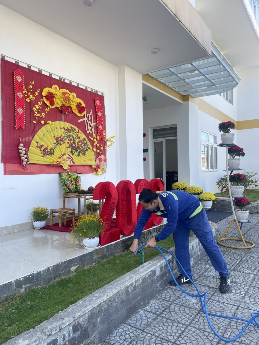 Thanh niên SKYPEC chỉnh trang đơn vị chuẩn bị đón Tết Nguyên đán 2026 tại CNKV Miền Trung.