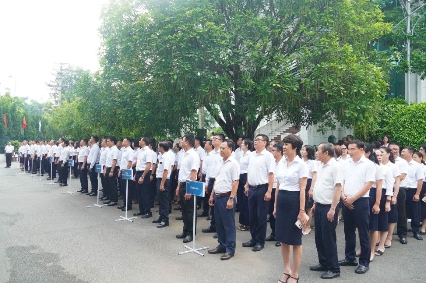 Đặc sắc trong hệ thống văn hóa của Skypec còn là nghi lễ chào cờ định kỳ. Đảng bộ và Ban lãnh đạo Công ty tổ chức các buổi Lễ chào cờ vào dịp đầu năm, chào cờ theo quý và trong những sự kiện trọng đại. Trong không khí trang nghiêm, toàn thể cán bộ, đảng viên và người lao động cùng hát Quốc ca, thực hiện nghi thức chào cờ và lắng nghe thông điệp định hướng từ lãnh đạo. Đây không chỉ là hoạt động chính trị – tinh thần giàu ý nghĩa mà còn là khoảnh khắc khơi dậy lòng tự hào dân tộc, củng cố ý thức kỷ luật, tinh thần đoàn kết, trách nhiệm với công việc và sự nghiệp chung. Lễ chào cờ đã trở thành điểm nhấn văn hóa quan trọng, hun đúc tinh thần cống hiến của mỗi người lao động Skypec. Những hoạt động trên đã góp phần biến học tập và văn hóa doanh nghiệp thành nhu cầu tự thân, tạo nên động lực nội sinh thúc đẩy Skypec phát triển bền vững. Đồng thời, đó cũng là nền tảng để xây dựng môi trường làm việc chuyên nghiệp, an toàn, thân thiện; chăm lo đời sống vật chất và tinh thần của người lao động, khơi dậy niềm tự hào, tinh thần cống hiến và khát vọng phát triển khi là thành viên của đại gia đình Skypec.