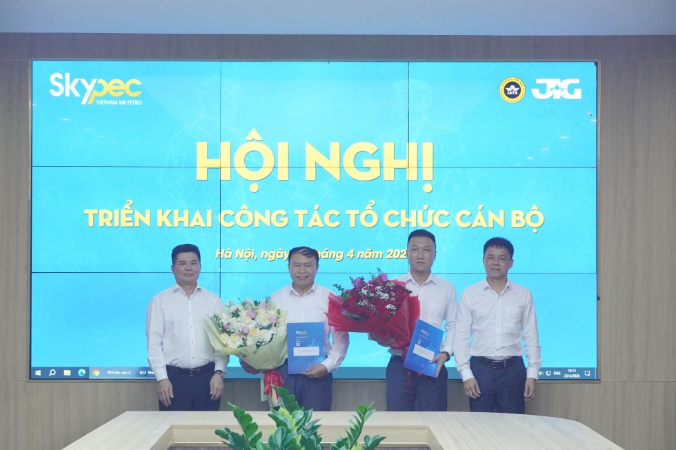 Ban Lãnh đạo Công ty trao quyết định bổ nhiệm, bổ nhiệm lại và tặng hoa chúc mừng các đồng chí Phó Giám đốc Chi nhánh Skypec khu vực Miền Bắc.
