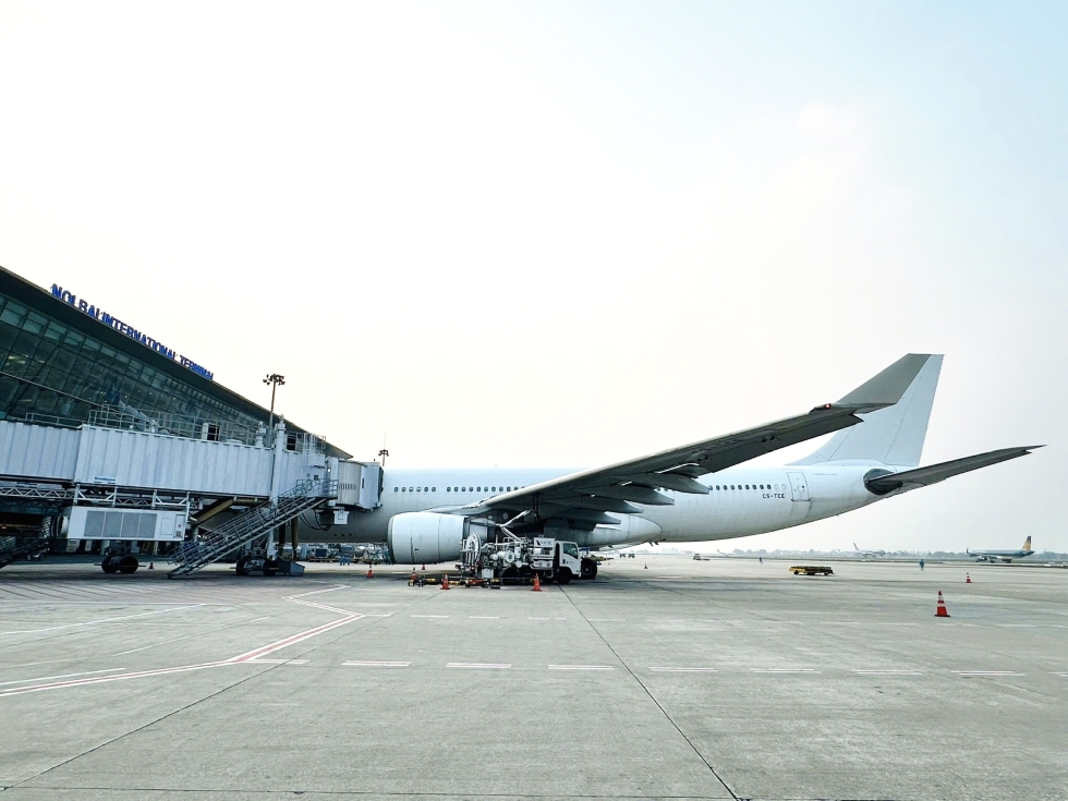 Toàn cảnh tàu bay thân rộng của Hãng hàng không Arkia tại Cảng HKQT Nội Bài, chuẩn bị cho hành trình kết nối thẳng tới Tel Aviv.